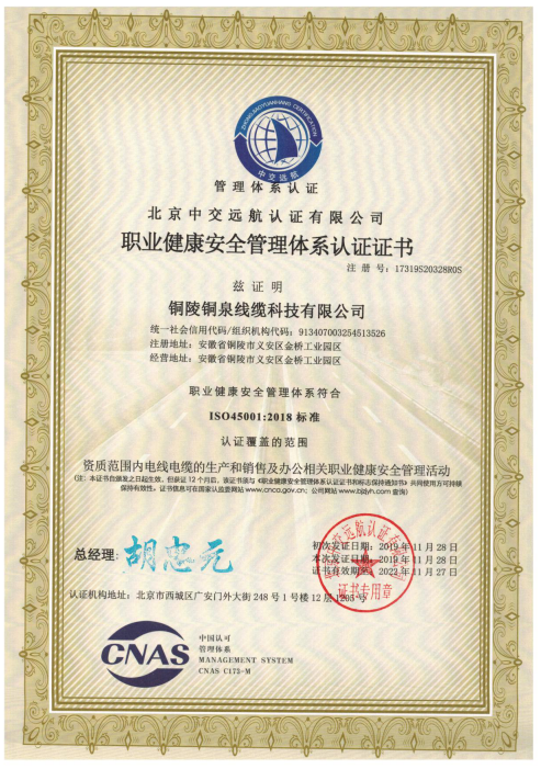 職業(yè)健康安全管理體系認(rèn)證證書